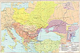В средата на V в., след разпадането на хунския военноплеменен съюз на Атила, южнославянската група се придвижва на юг от Карпатите и заема античните провинции Дакия и Панония, на север от р.Дунав. Славините стават непосредствен съсед на Византийската империя.