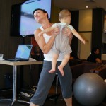 Водещата на срещите Таня Русева обясни на присъстващите за правилното хранене по време на бременността и кърменето, кое трябва да се избягва, кое е за предпочитане и на какво трябва да се наблегне по време на диетата на всяка една майка. Естествено разискваха се и винаги актуалните теми, свързани с храненето, а именно кофеинът (шоколадът най-вече) и алкохолът, които по принцип са в ограничени количества или въобще не присъстват в менюто на една бременна и след това кърмачка, но като се има предвид, че понякога това може да продължи по три и повече години, нормално винаги се провокира с въпроси лекторът с тайната надежда да намекне дори, че малко може. Кофеинът в определени ситуации, количества и вид – може, но за алкохола, за съжаление, не са толкова словоохотливи специалистите. Е, като се замислиш за каузата, заслужава си не толкова фаталното лишение! След шегите по любопитните теми, плавно се премина към физическата активност и Поли. Поли е на 35 години, омъжена, майка на прекрасната Ева и от 19 години се занимава със спорт, инструктор по аеробика, степ аеробика, тае бо, каланетика, пилатес, гимнастика за бременни. Има собствен блок, където можете да се запознаете с интирисни неща, свързани със спорта http://www.letsgym.com/ и здравословния начин на живот. Днес бяхме свидетели на серия от упражнения за бременни, като стана ясно на всички присъстващи кое е редно и кое не трябва да се прави в този период от живота. След това Поли показа любопитни упражнения с бебче, което се оказа забавно за малкия помощник от публиката и полезно за майката като заедно с това в едно се включва и спестяването на вечно ценното време, и приятното изживяване с малкото съкровище. Накрая обсъдихме спортовете, които може да се практикуват въобще, като на всички присъстващи бяха раздадени брошури с упражнения за работа вкъщи! Така че само желание да има, варианти всякакви!